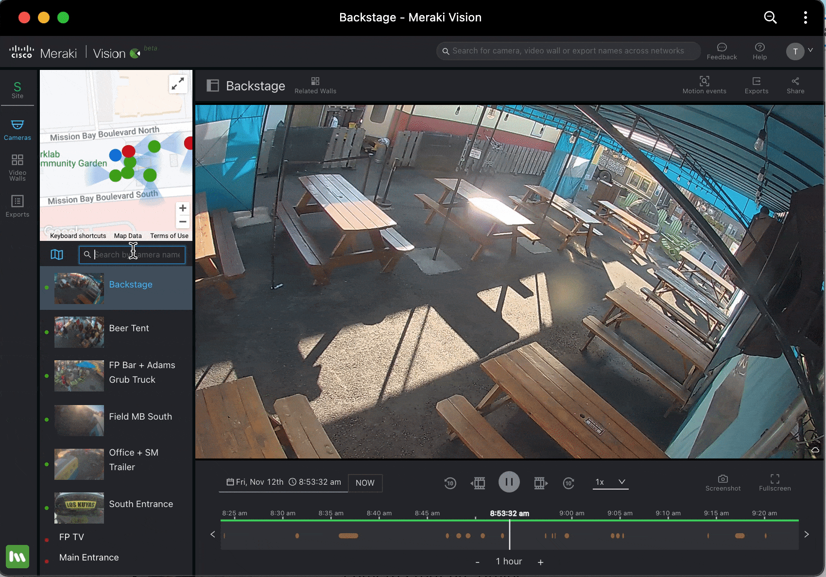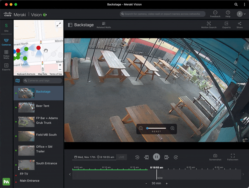 Meraki Vision is a camera-viewing portal designed for core physical security use cases. It allows you to easily navigate between cameras to view video, conduct motion search, and share footage.