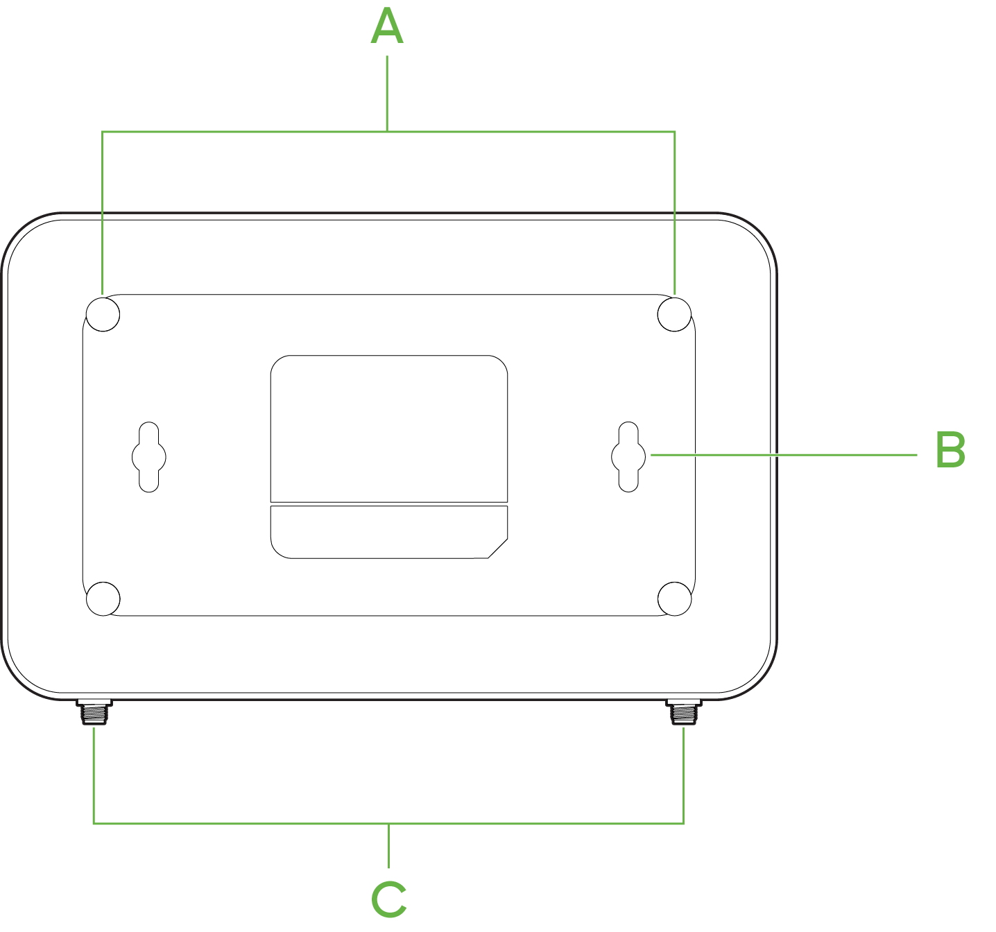Wall screws and anchors will allow you to mount the gateway on a drywall surface, either vertically or horizontally. The distance between the holes you drill should be 5-1/8 inches (13 cm).