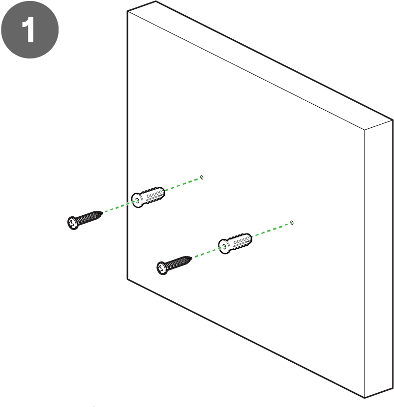For mounting on drywall, use a ¼-in drill bit, then insert the plastic and screw assemblies.